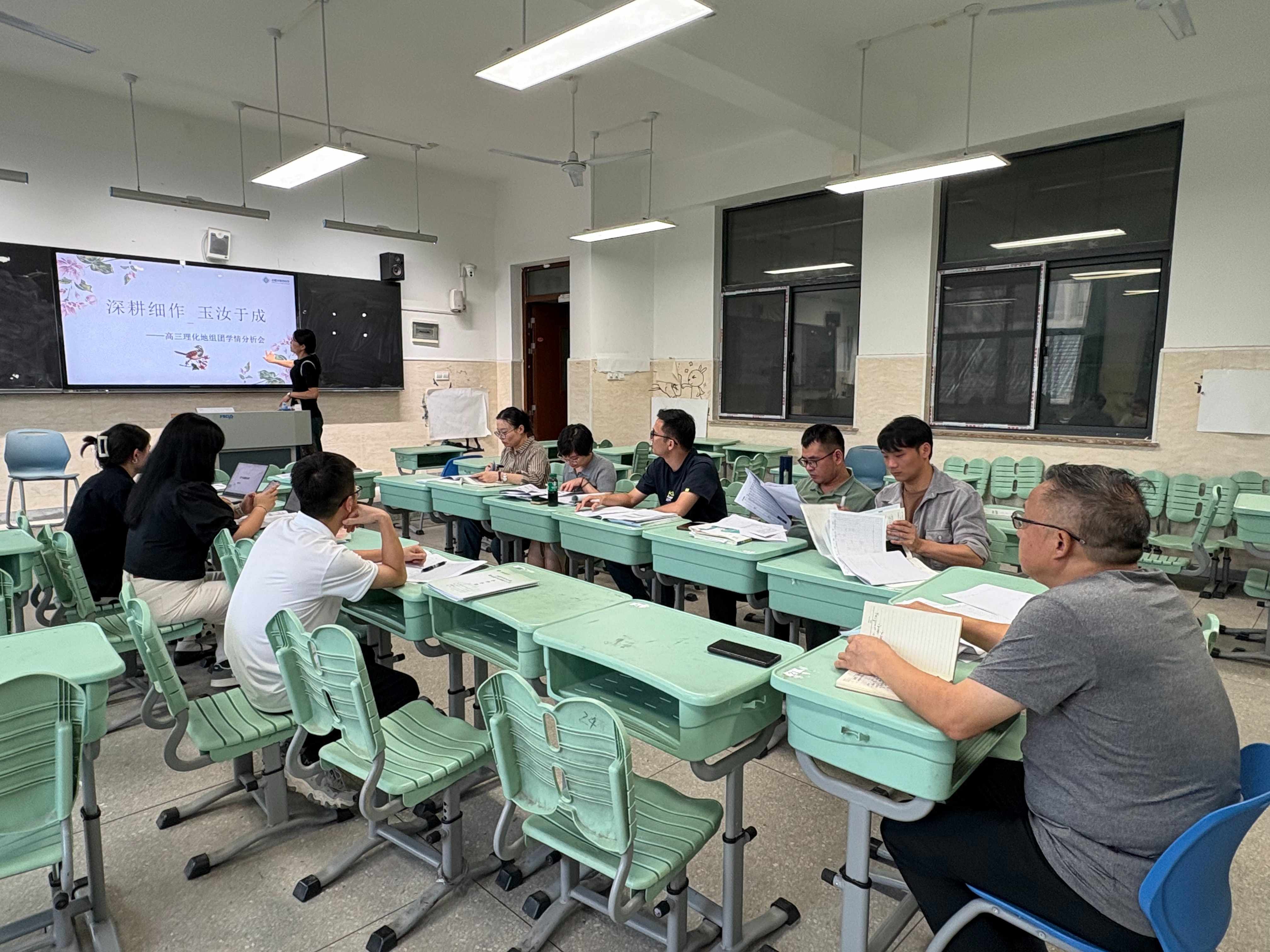 校长毛晓斌参与指导物化生平行班组团分析会。物化生平行组团长何昊老师,首先对组团整体情况展开分析,随后各班班主任从班级常规管理、学生心理健康问题、成绩数据跟踪等多维度依次做班情剖析。任课教师展开研讨后,毛晓斌作总结讲话,强调各位教师要有耐心,班级课任教师要形成合力,主动帮助有困难的学生,关心关爱每个孩子,为后续教育教学精准施策。