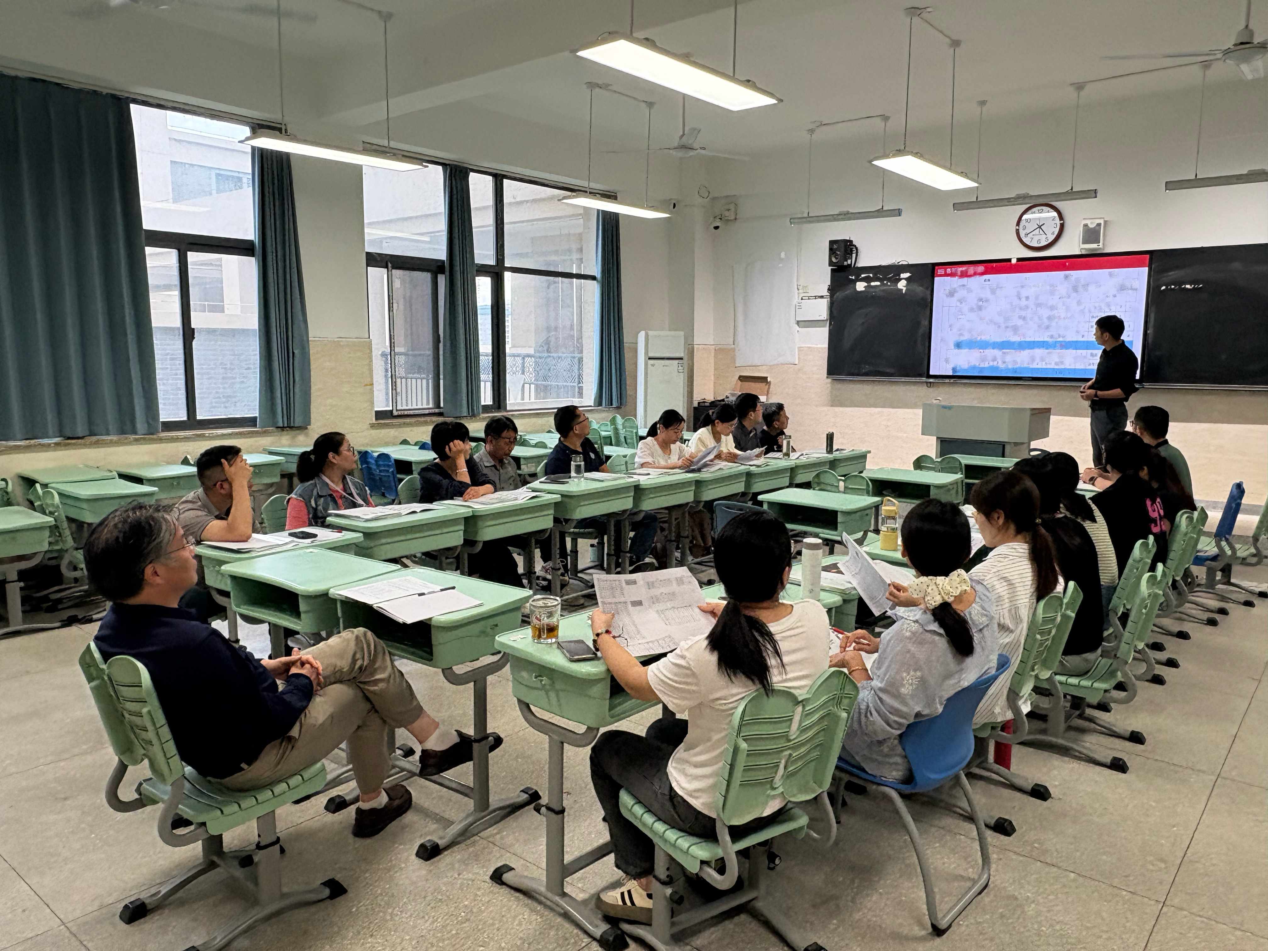 副校长李昌年参与指导物化地组团分析会。物化地组团长张素芳老师先介绍组团整体学情,对比分析班级学科情况,介绍部分学困生成绩提升点。随后,班主任及任课教师,从班级整体情况、班级管理潜在风险及学生特点等方面展开。期间,教师们围绕班级发展与学生培养深入研讨。最后李昌年给出指导性建议,强调题目精选、落实导师制(教师提问题、讲问题并做好记录),聚焦本科达线率、特控线达线率等硬指标,为后续教育教学精准发力、助力学生成长指明方向。