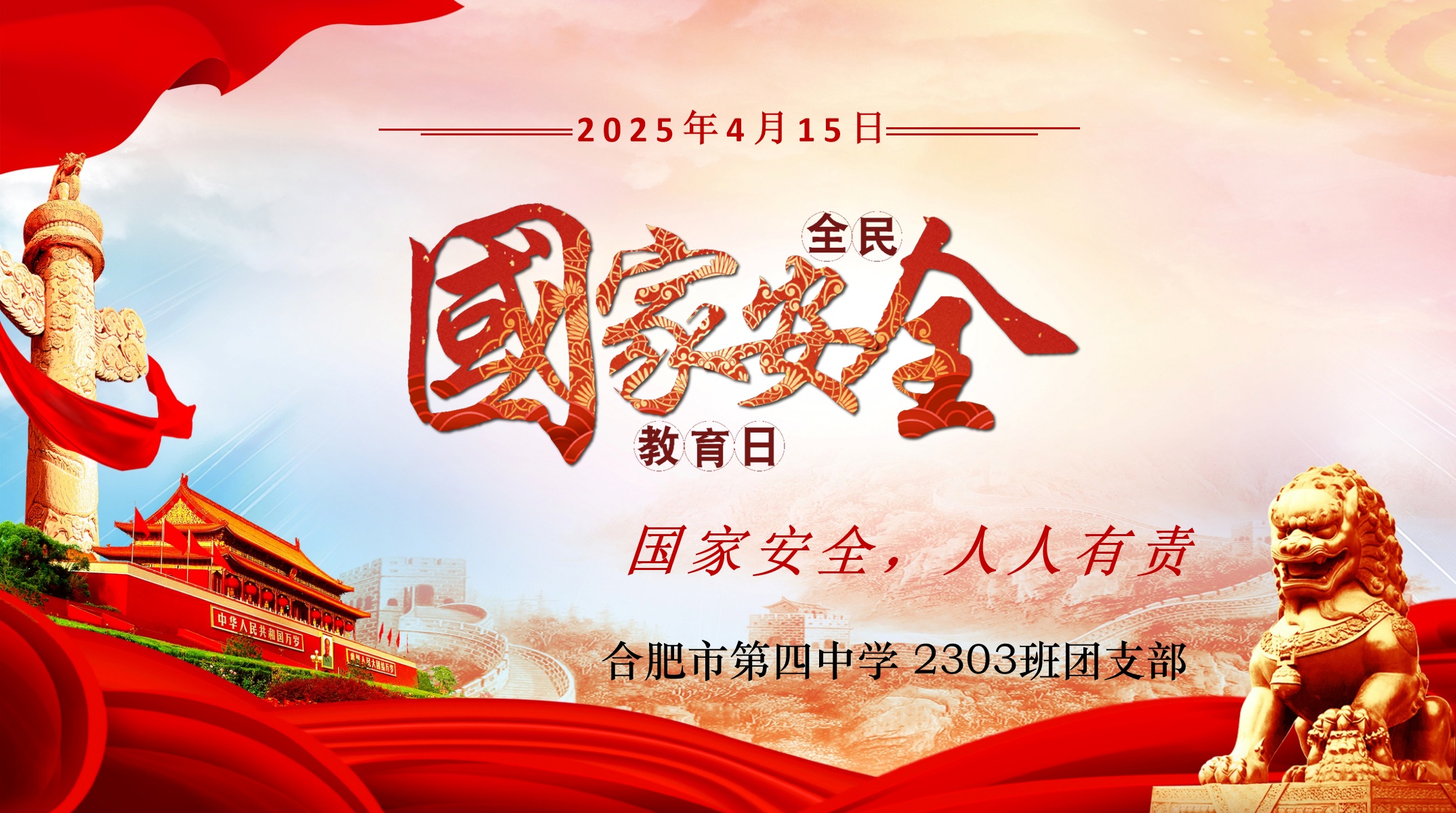 在第十个 “4・15” 全民国家安全教育日,合肥四中 2303 班团支部积极响应号召,开展以 “国家安全,人人有责” 为主题的团日活动,通过丰富多样的形式,带领同学们深入学习国家安全知识,探讨国家安全与普通人的紧密联系,增强维护国家安全的责任感与使命感。​