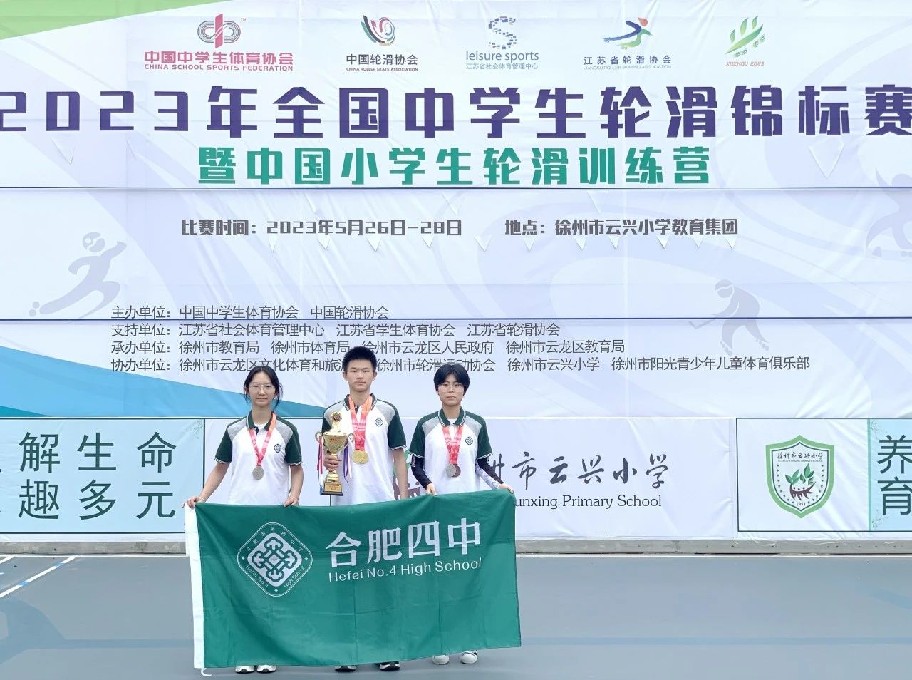 2023年5月26日,2023年全国中学生轮滑锦标赛在江苏省徐州市举行,本次赛事由中国中学生体育协会、中国轮滑协会主办,比赛项目包括速度轮滑、自由式轮滑、单排轮滑球、轮滑阻拦赛、花样轮滑队列滑等。来自全国21个省、238个轮滑参赛队的1600多名轮滑教练员、运动员们汇聚于此,合肥四中轮滑队参加比赛并荣获佳绩。