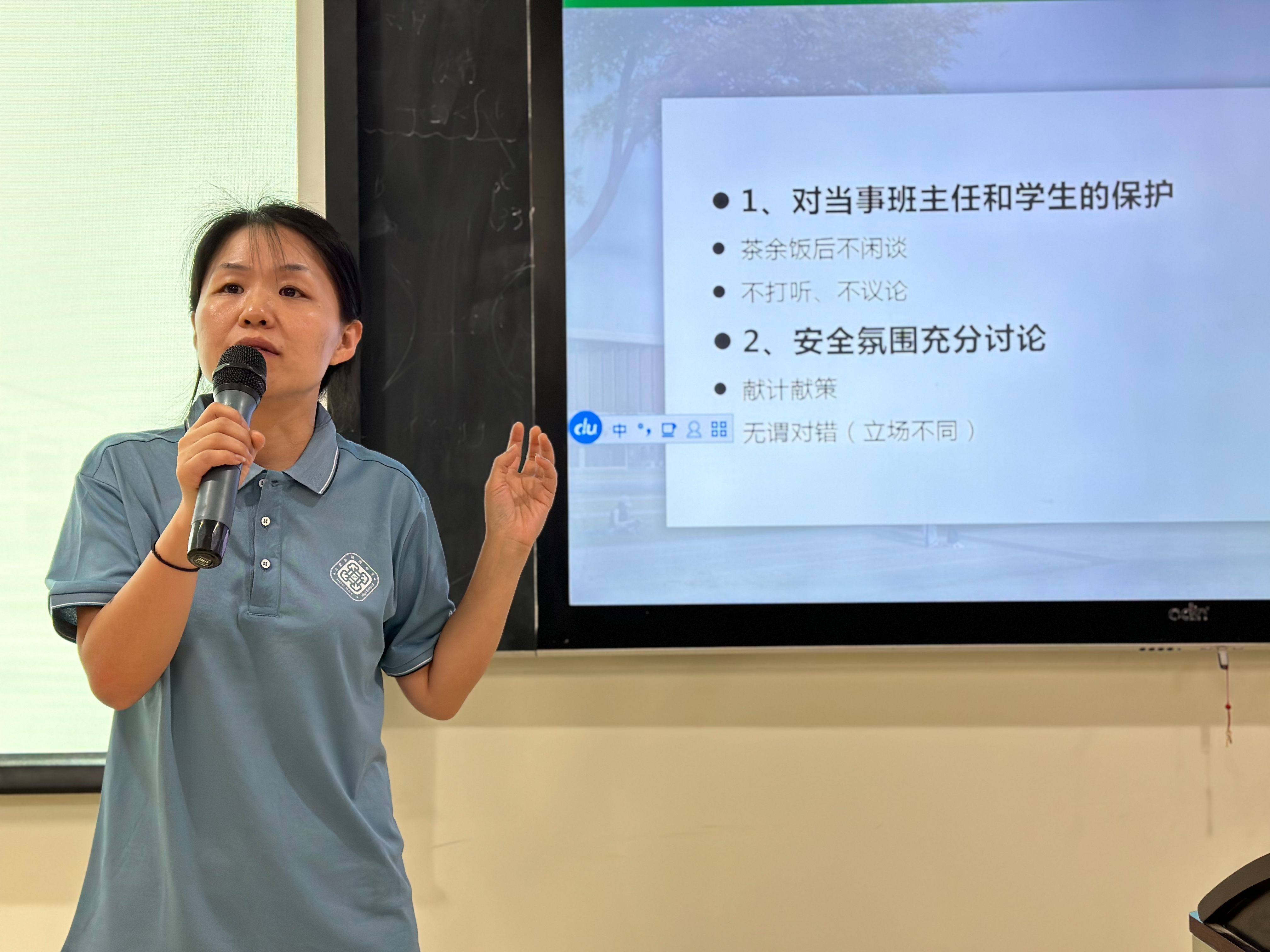 在案例讨论中,陈园园带领大家站在家长的视角体会家长的需求,打破班主任视角的限制;从复盘的视角总结班主任在处理学生问题时,如何做可以让家长感受到被理解、被认真对待;面对可能有极端想法的学生,班主任需要做哪些工作。在各位班主任积极热烈的发言中,梳理出重要的家校沟通经验,把学校教育和家庭教育拧成一股绳,共同守护学生健康成长。