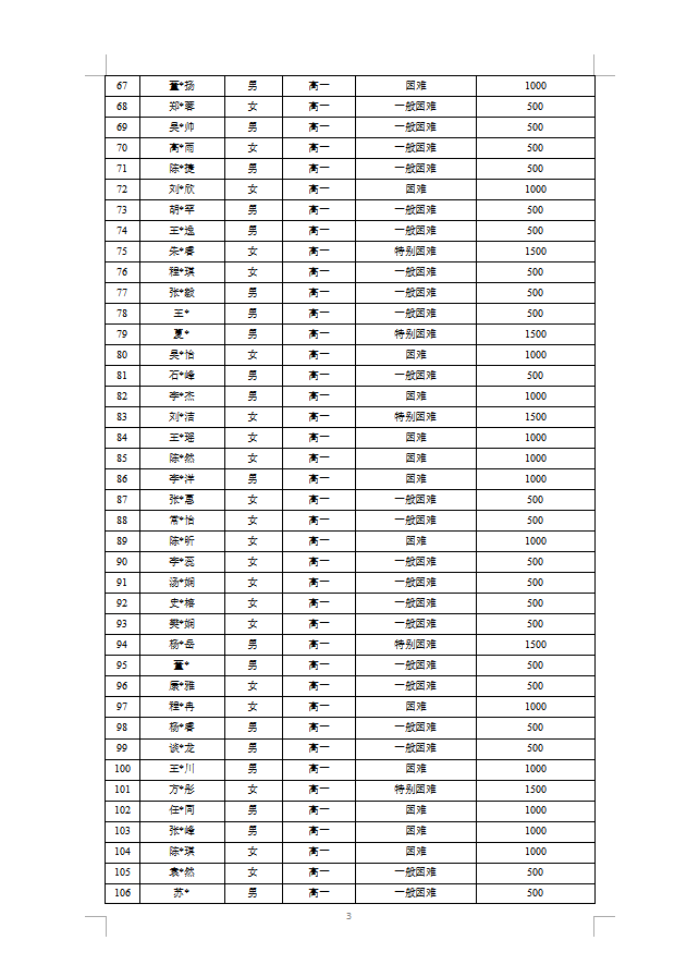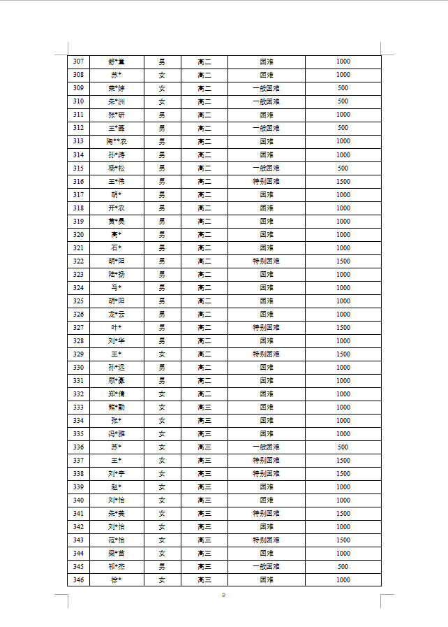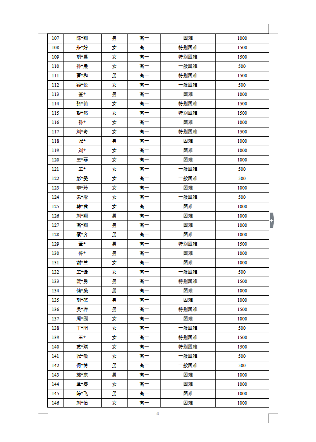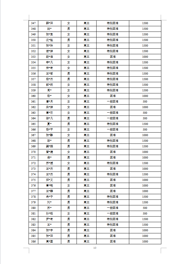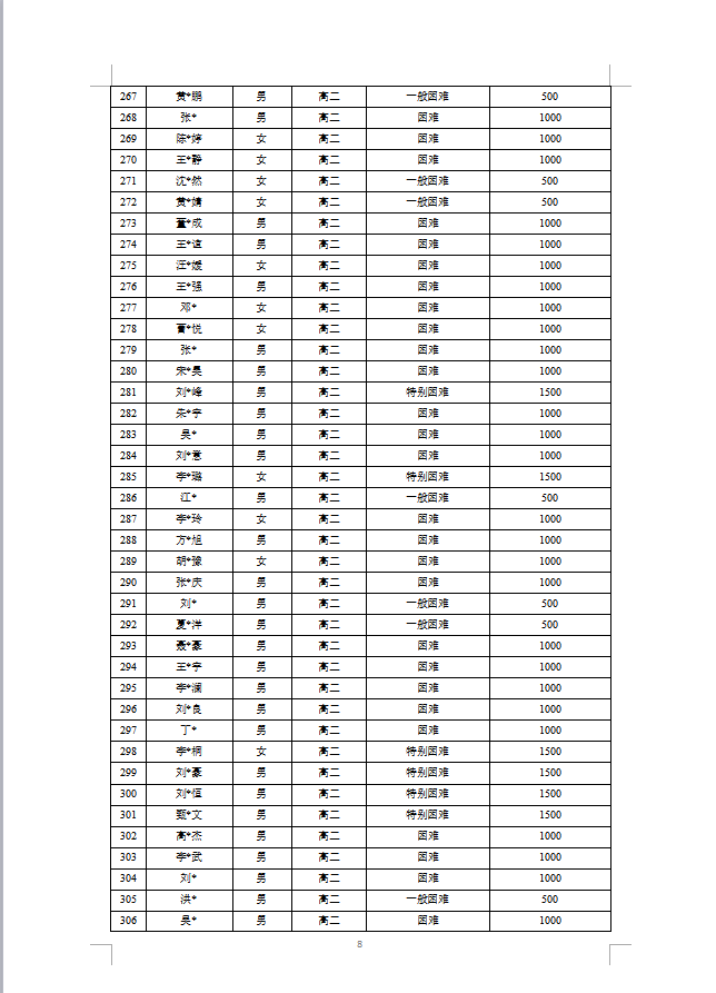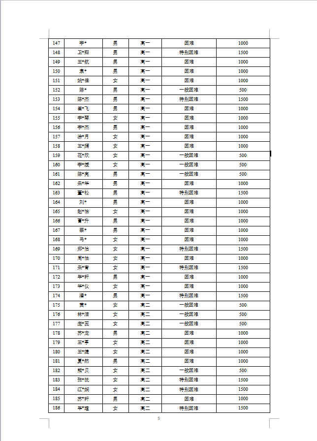 合肥市第四中学2020年秋季学期国家助学金名单公示
