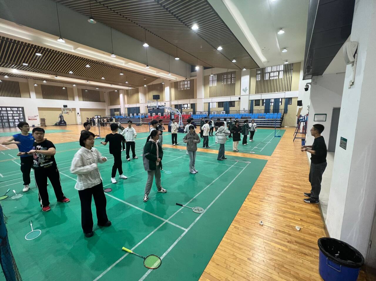然后是自由打球,社员们分为四组,互相学习,尽情挥拍,增长球技。轻盈的羽毛球在空中来回穿梭,大家奔跑、跳跃、击球,每一次精彩对打都赢得阵阵喝彩。尽管部分同学球技稍显稚嫩,但热情丝毫不减,积极向身边同学和老师请教,营造的我社团结向上的社团氛围。