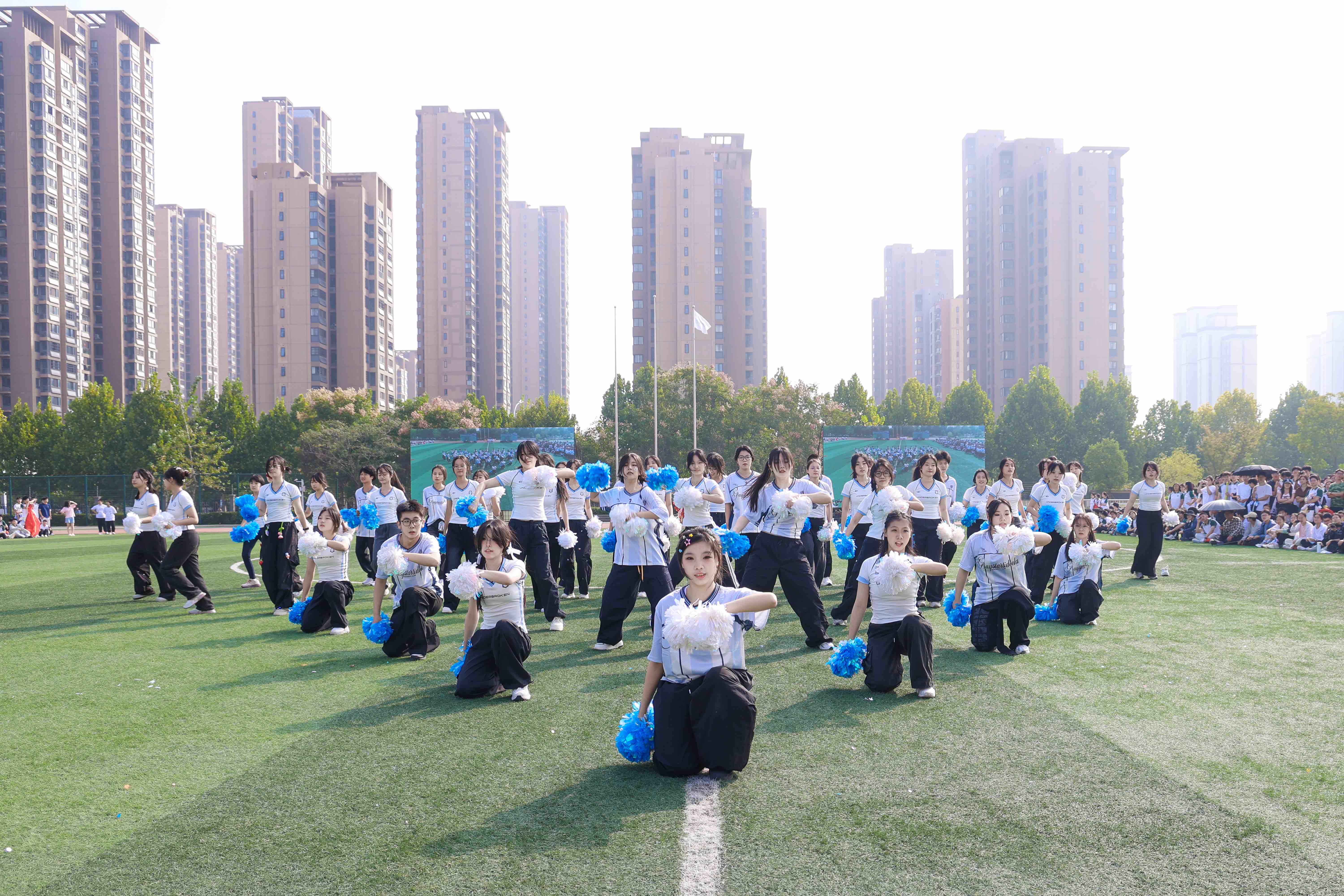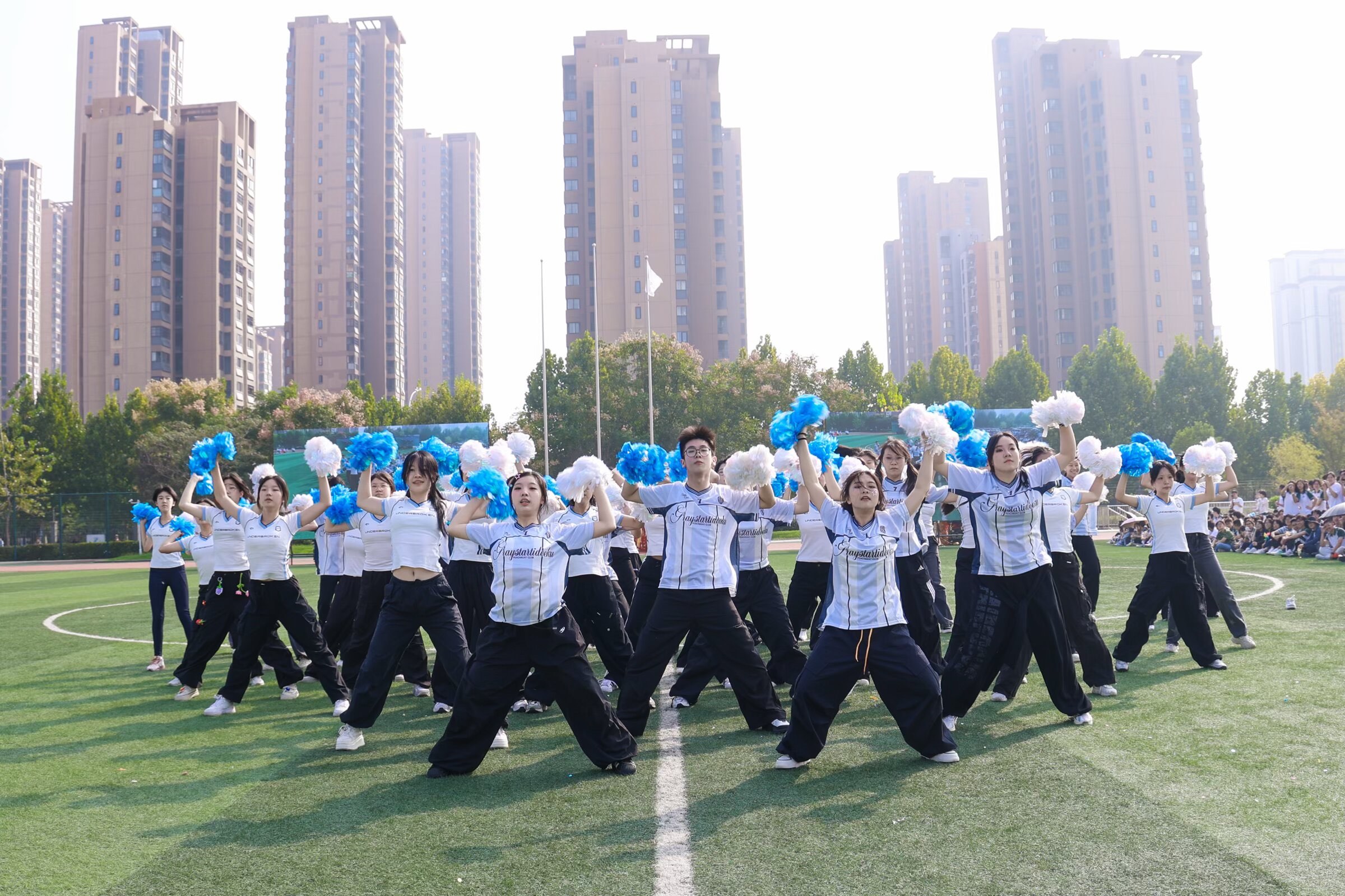 2025年金秋,合肥市第四中学田径场上彩旗飘扬,全校师生齐聚一堂,共同见证一年一度运动会的盛大启幕。作为每年开幕式的固定表演环节,校Xpowermax舞社49名社员以一曲活力四射的啦啦操表演引爆全场,用青春跃动的舞姿践行国家“强化校园体育、促进学生全面发展”的教育方针,成为学校落实“每天两小时体育活动”政策的生动缩影。