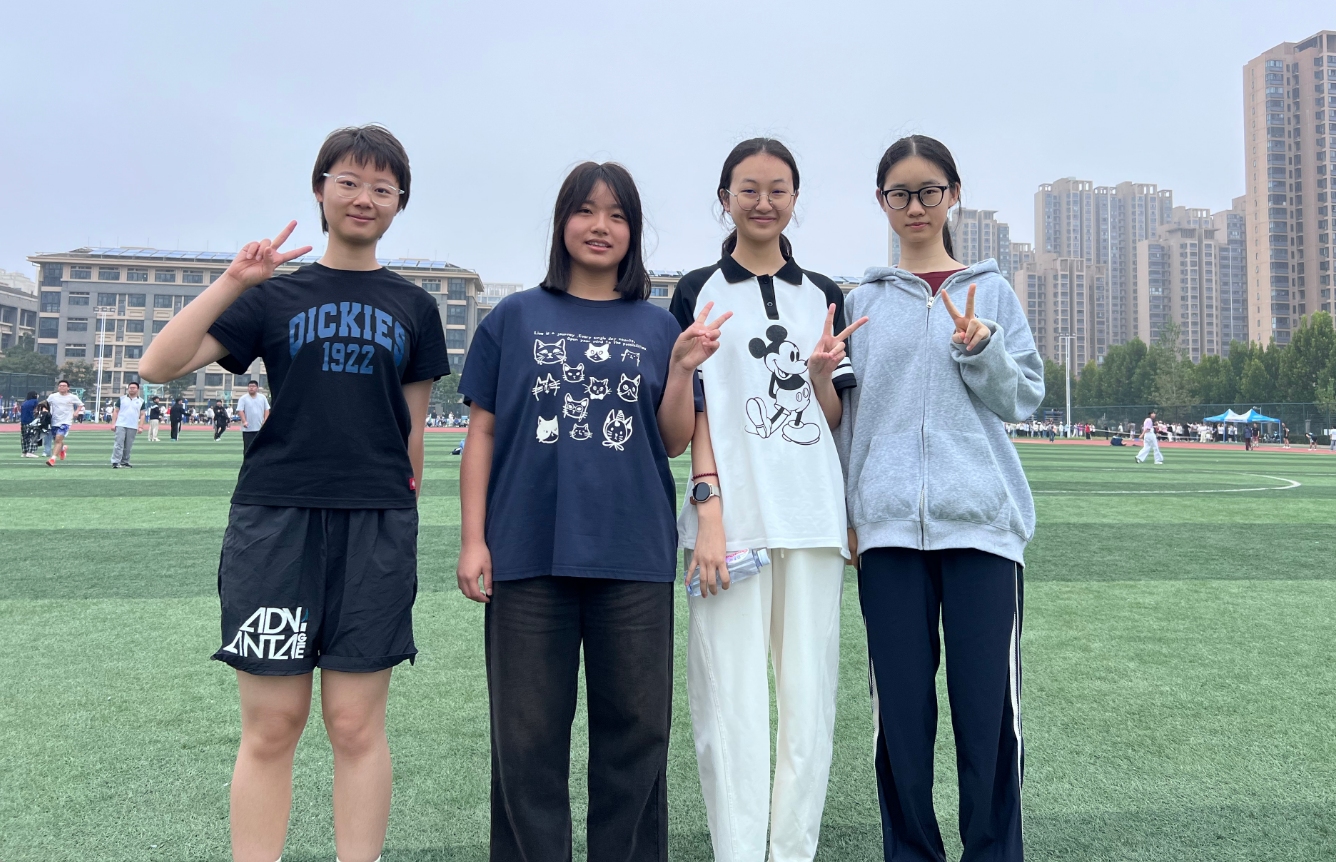 而由董昱含、朱文婷、孙悦妍、陈子奥组成的女子4×100米接力队,四位女将配合默契,如离弦之箭,在决赛中奋力冲刺,最终勇夺第三名!跑道旁,是全班同学震天的加油助威声,这一刻,团结的力量感染了每一个人。