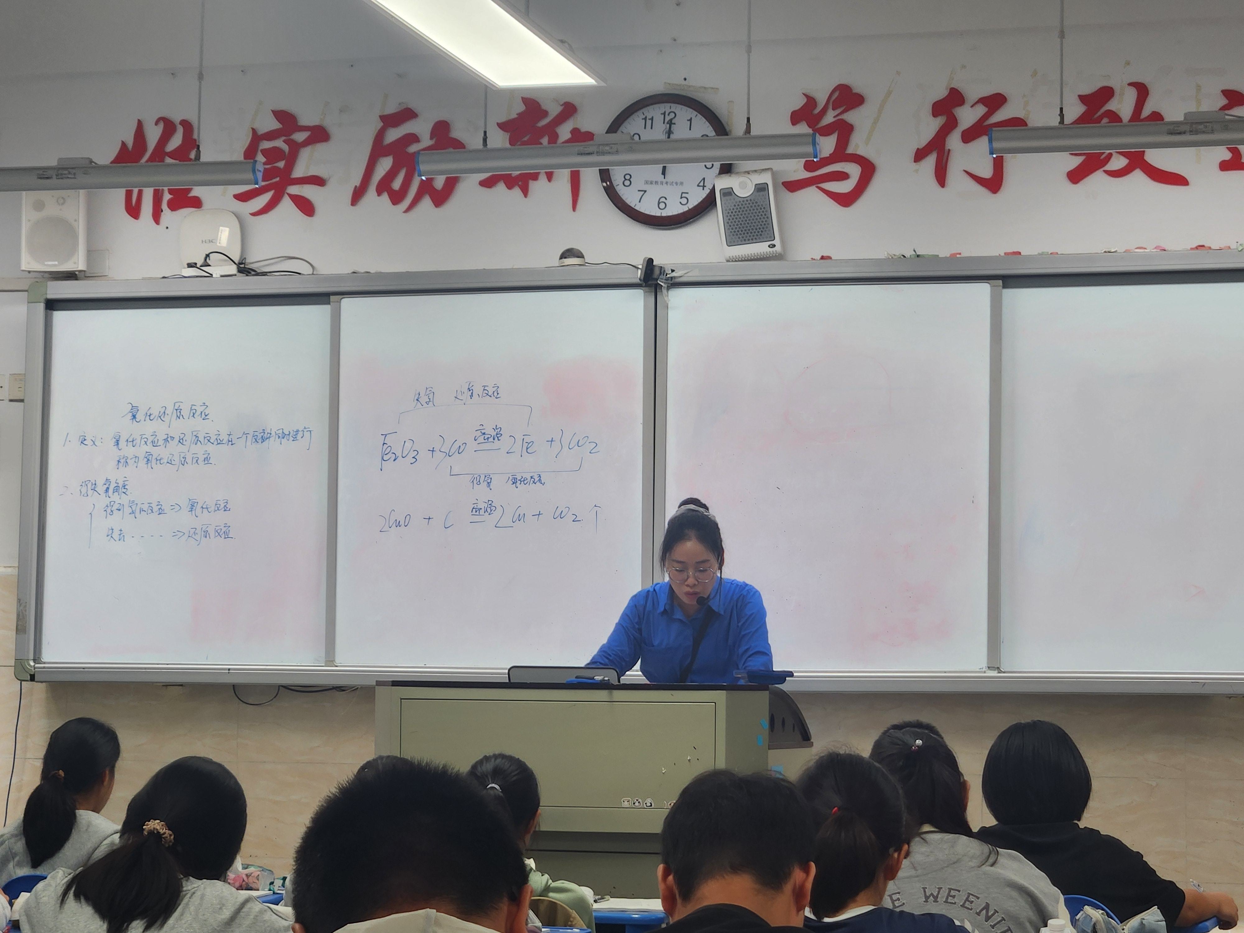 教研活动的核心环节,是朱科敏老师带来的《氧化还原第一课时》公开课。课堂上,朱老师以“高炉炼铁”的工业实例导入,通过提问“为什么氧化铁能变成铁?”引发学生思考,自然过渡到 “氧化还原反应” 的概念教学。她紧扣教材逻辑,先引导学生从“化合价变化” 判断氧化还原反应,再通过对比初中“得失氧”的旧知识,帮助学生建立知识衔接;在讲解 “氧化还原反应与四大基本反应的关系”时,结合表格归纳特征,让抽象概念更易理解。