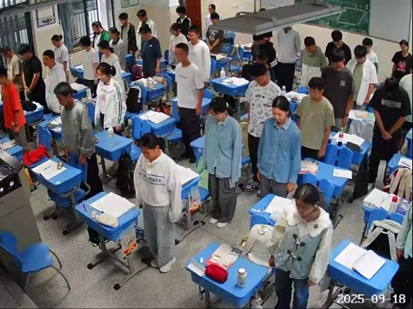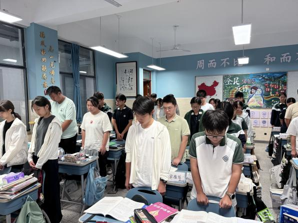 观看结束,全体师生起身,低头默哀 1 分钟。整个校园寂静无声,唯有窗外雨滴落下的声音,仿佛在为逝去的先烈和遇难同胞轻声哭泣。这 1 分钟,是对历史伤痛的深切缅怀,也是对和平的虔诚祈愿。