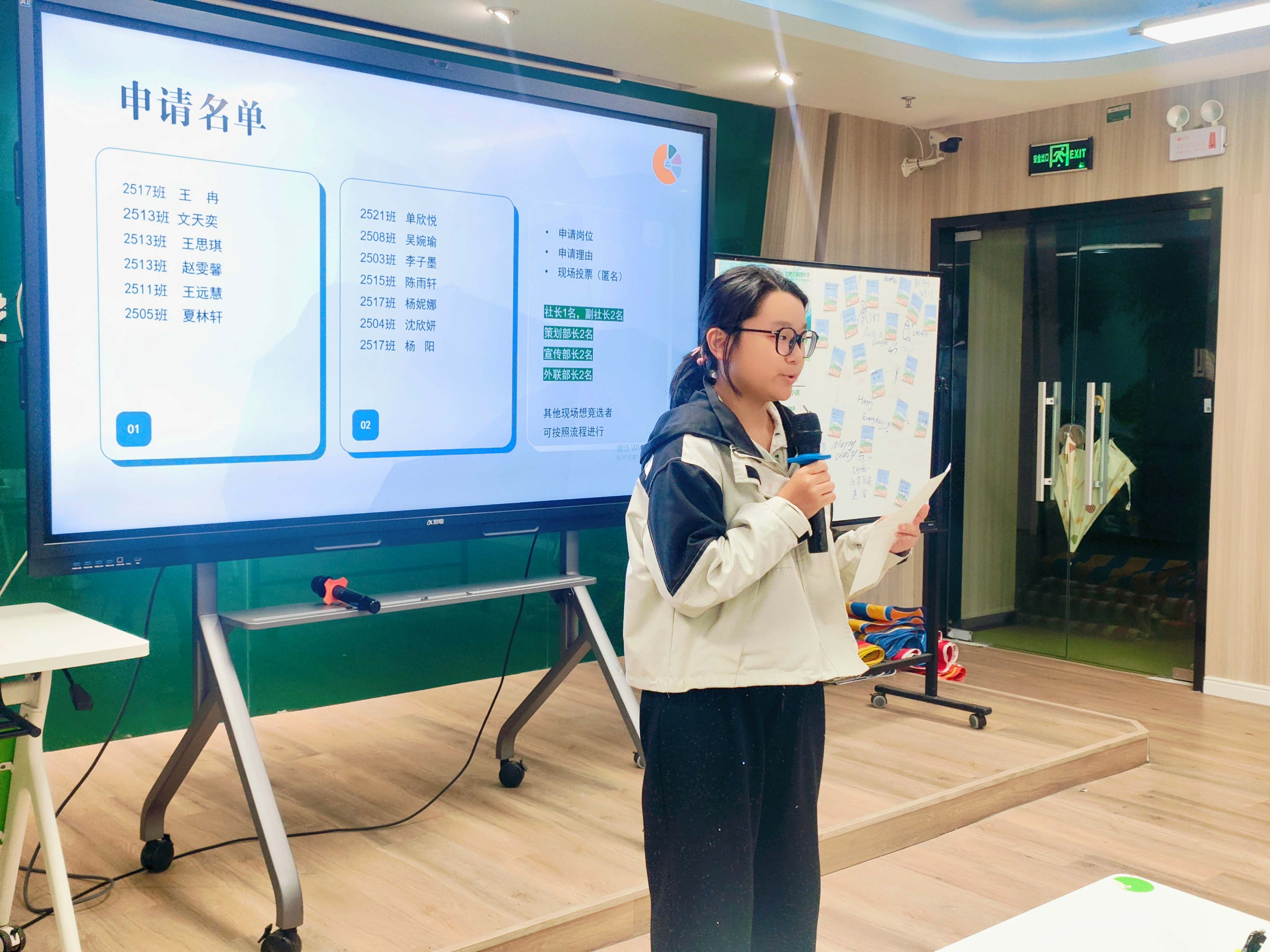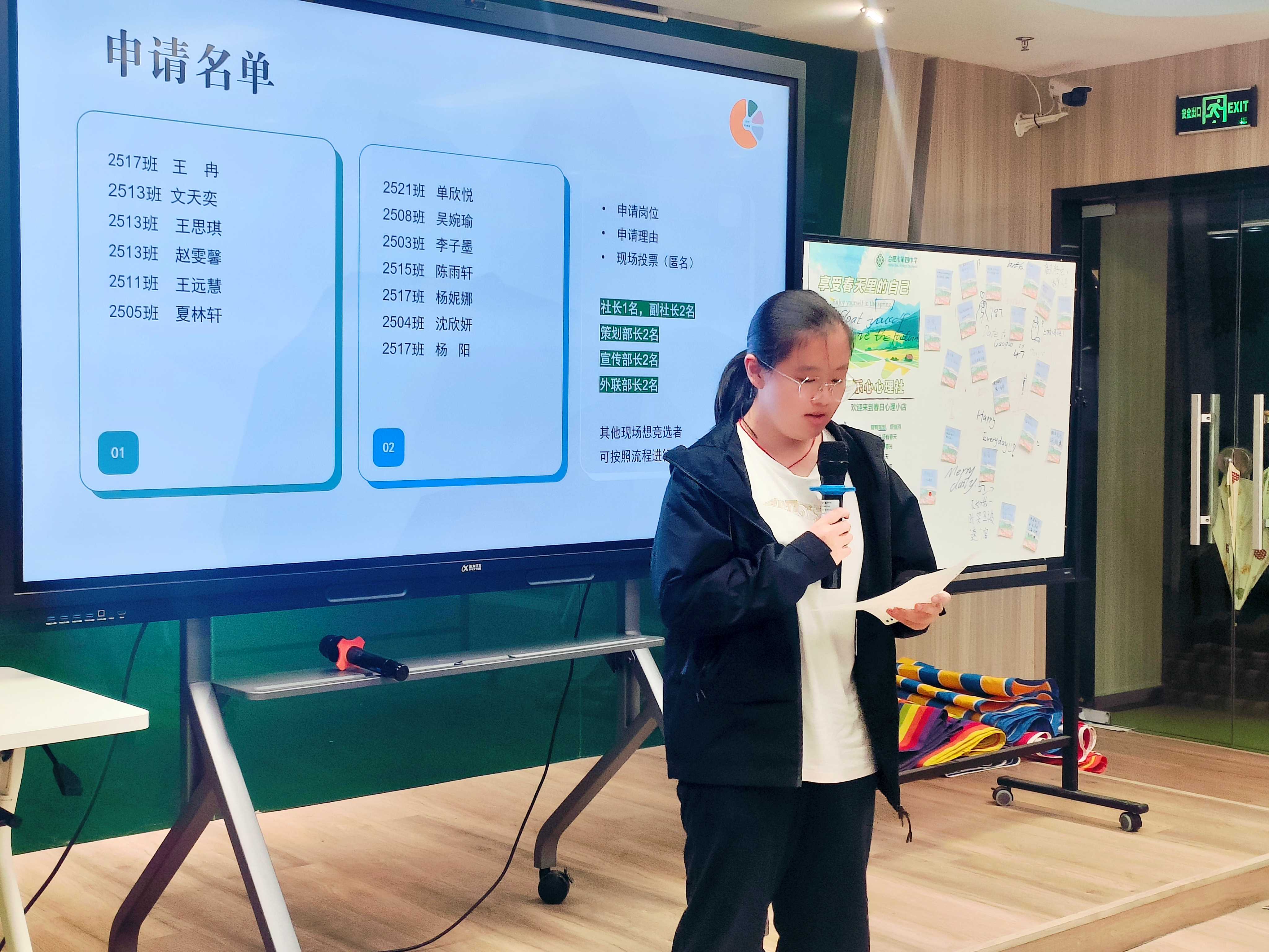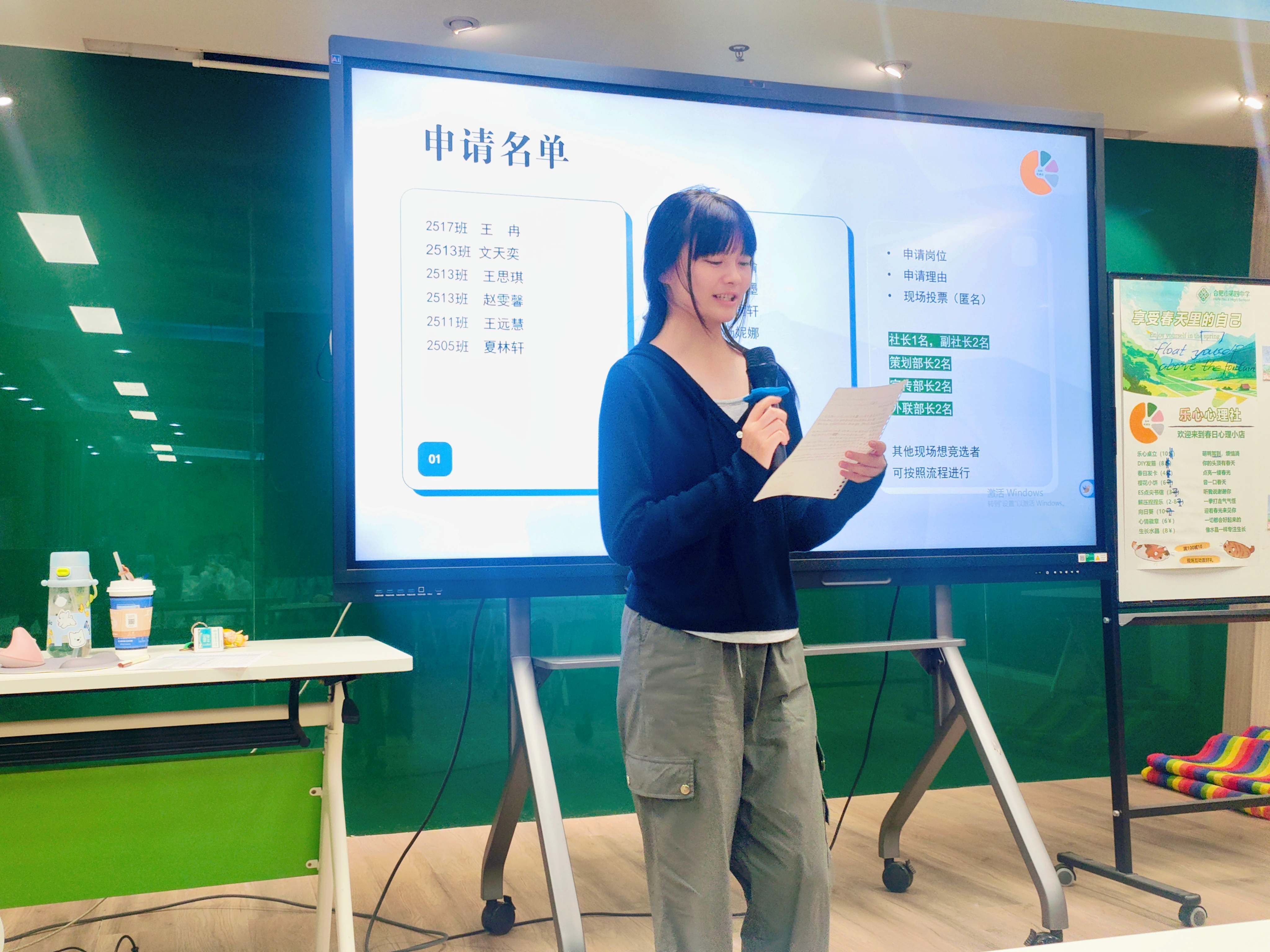 活动首先进行的是第八届社干选举。本次竞选设有社长、副社长、策划部长、宣传部长、外联部长等多个职位,采取“个人自愿申请+现场匿名投票+教师综合评价”的方式,确保选举过程公平、公正、公开。