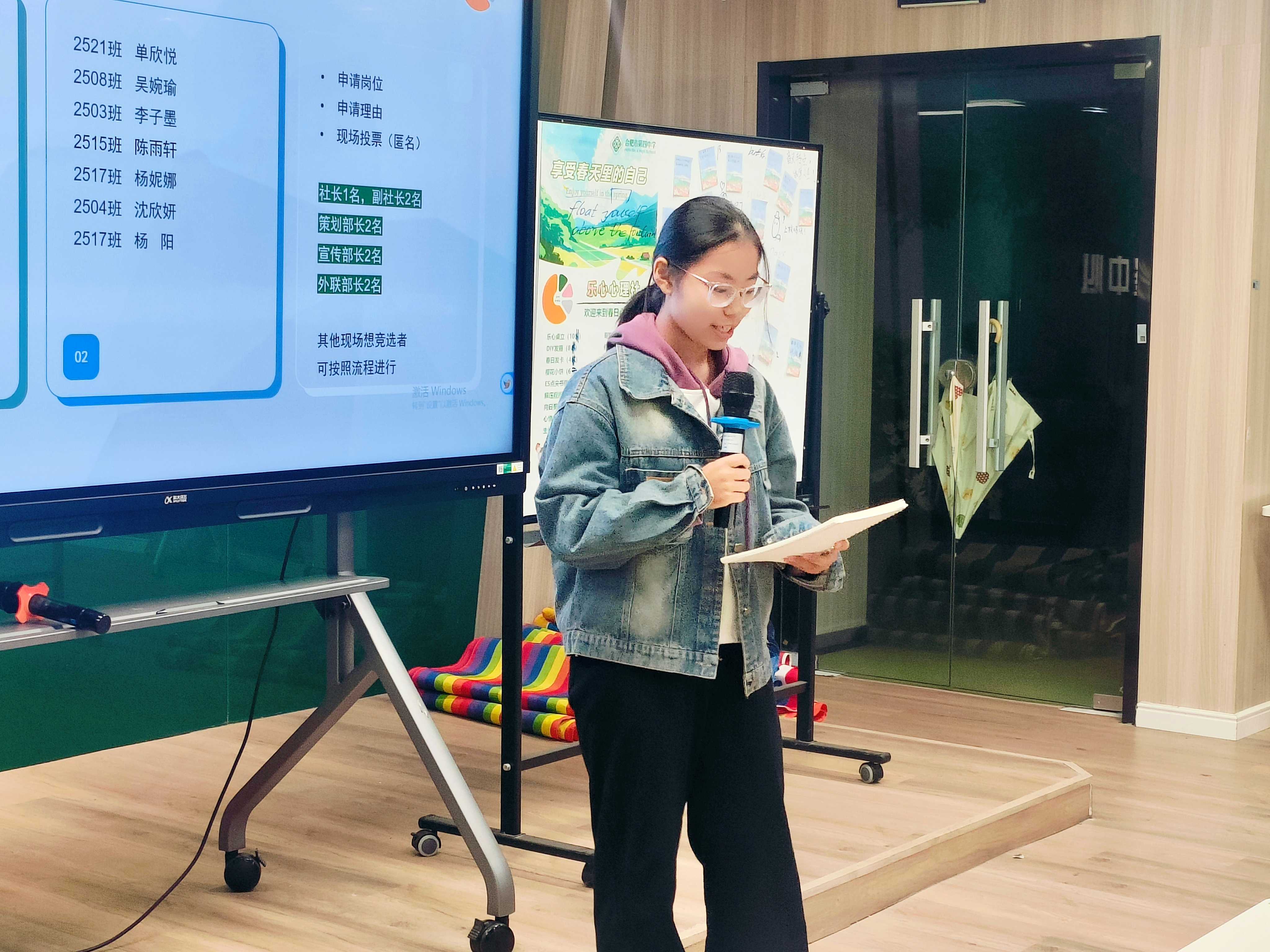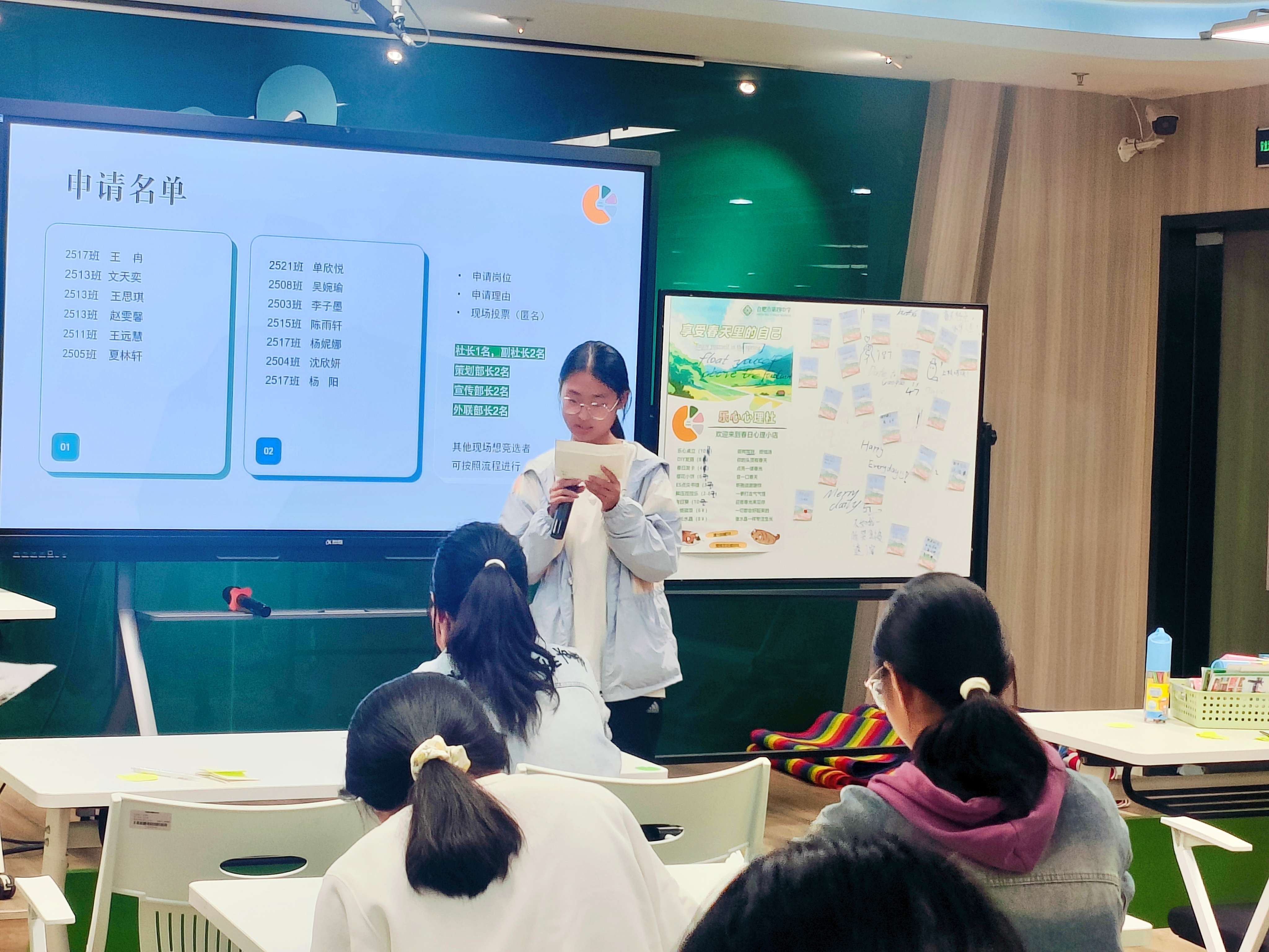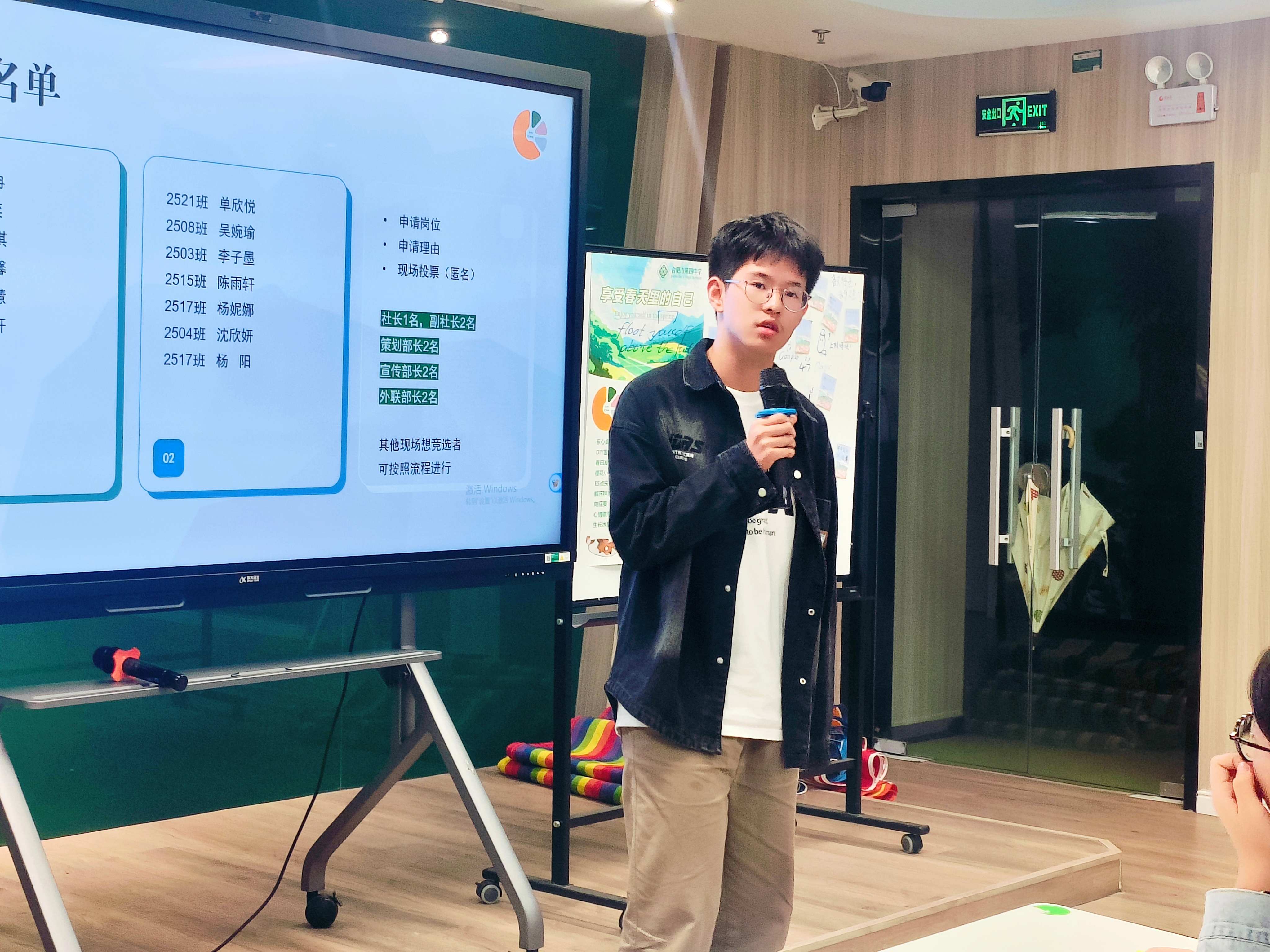 活动首先进行的是第八届社干选举。本次竞选设有社长、副社长、策划部长、宣传部长、外联部长等多个职位,采取“个人自愿申请+现场匿名投票+教师综合评价”的方式,确保选举过程公平、公正、公开。